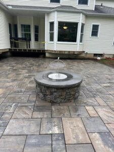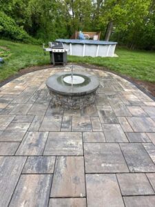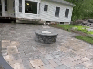 We transformed this backyard with a custom-designed paver patio featuring a stunning circular fire pit centerpiece. Built for both relaxation and entertaining, this space combines durability, elegance, and expert craftsmanship—perfect for outdoor living in any season.